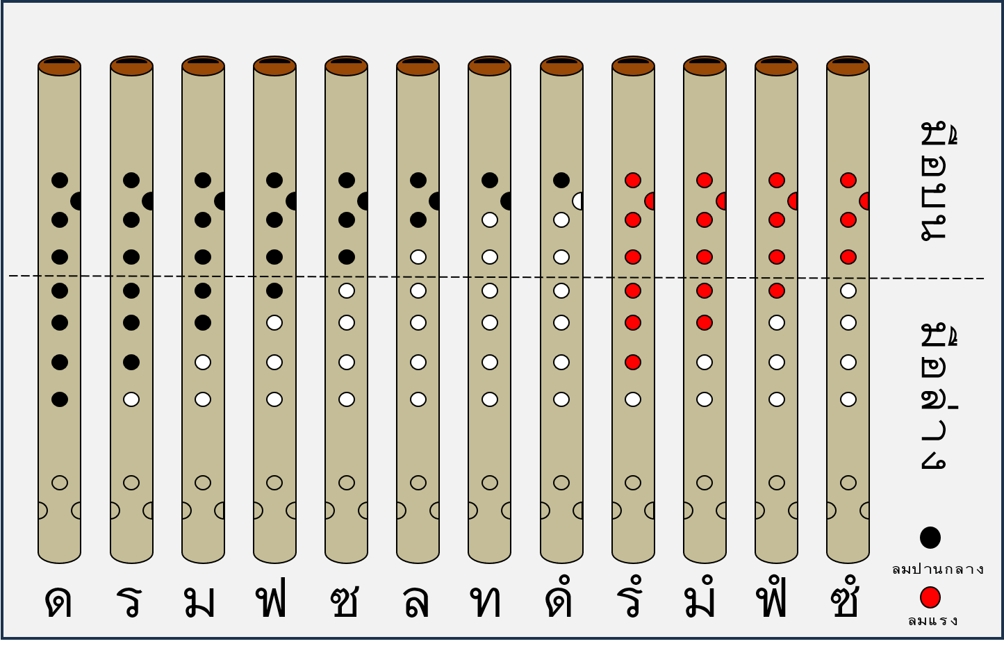ตารางแสดงตำแหน่งการวางนิ้วขลุ่ยเพียงออ